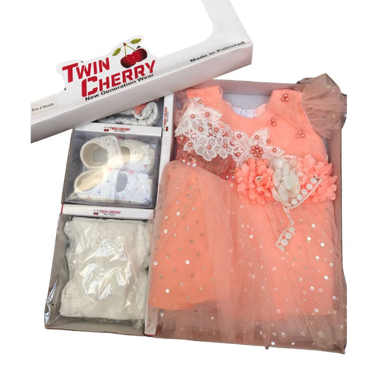 3pcs Elegant Festive frock premium cotton size available for 0-5year