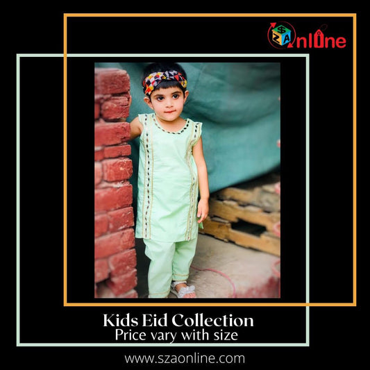 Mint Green Festive Eid Dress For girls in cotton stuff (size 1-5year)