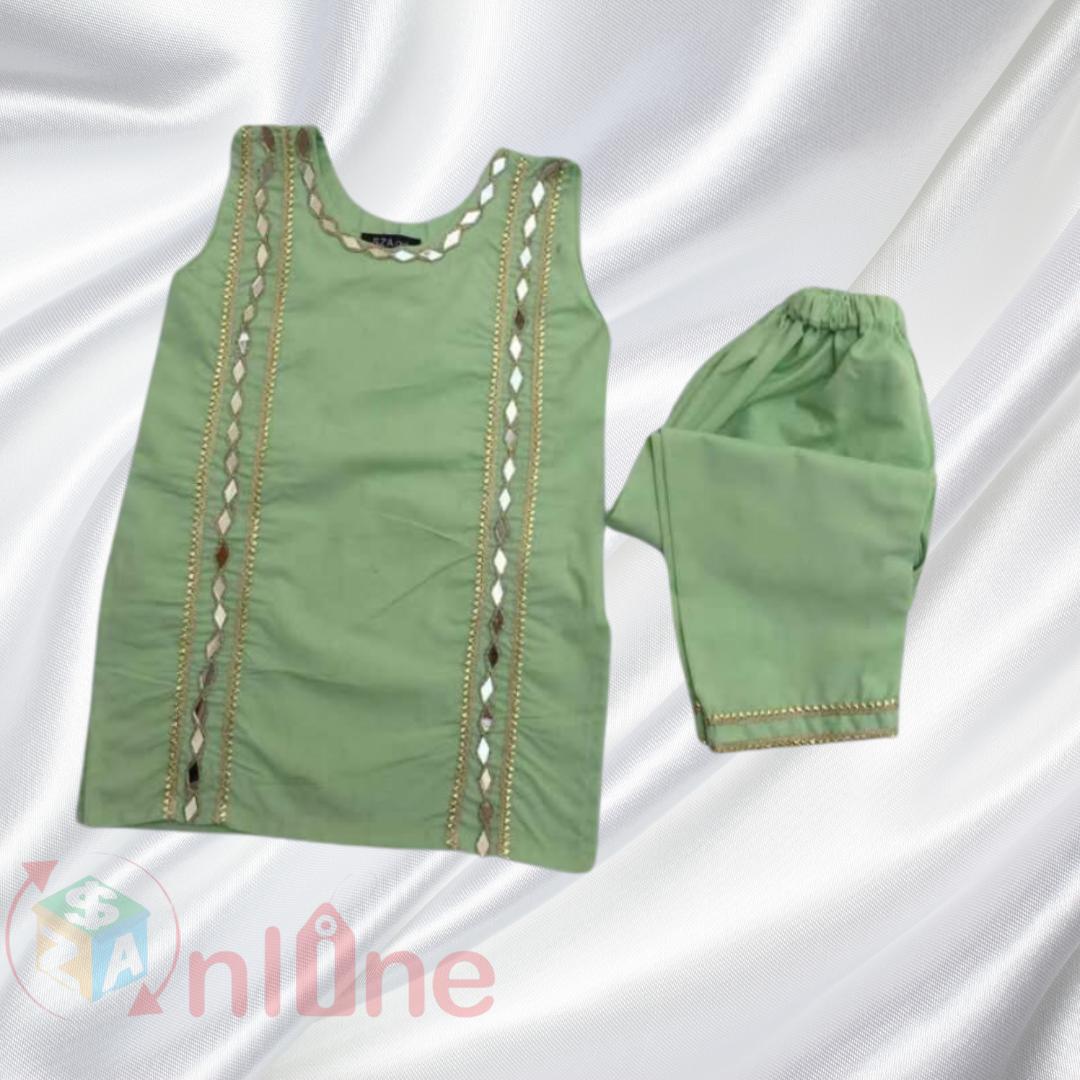 Mint Green Festive Eid Dress For girls in cotton stuff (size 1-5year)