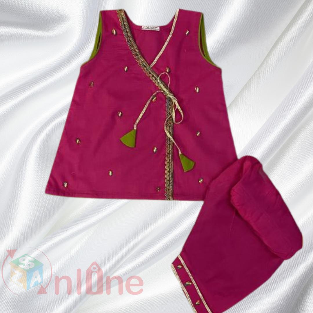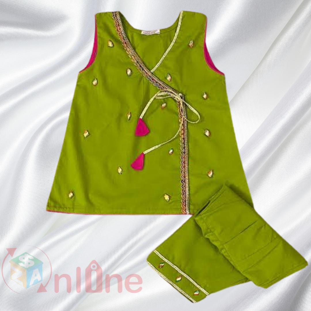 Elegant Angrakha style frock premium cotton stuff sizes available for (1-5year)
